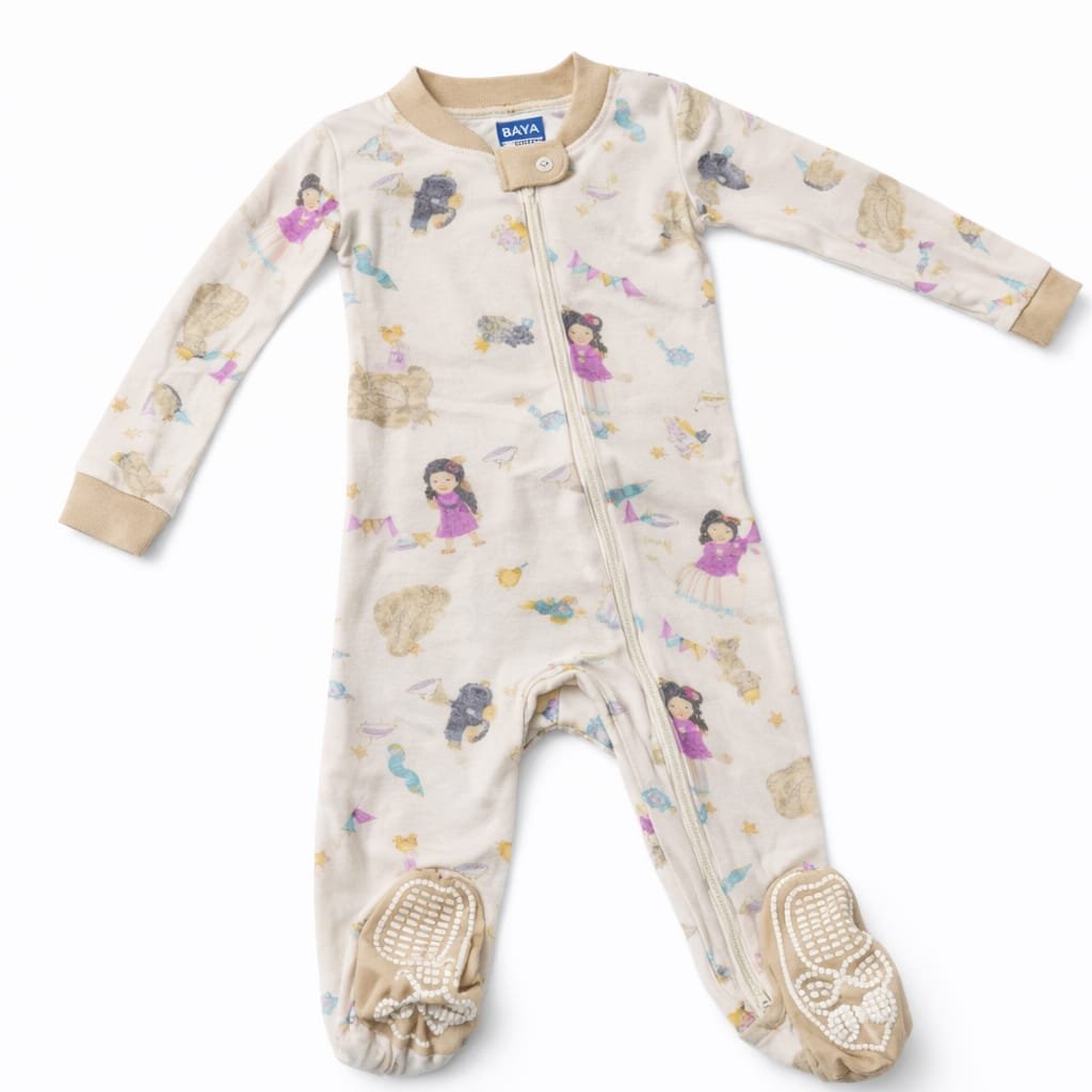 Made from breathable, baby-friendly fabric, it features a smooth front zip closure for easy dressing and built-in anti-slip foot grips for extra safety during tiny steps.